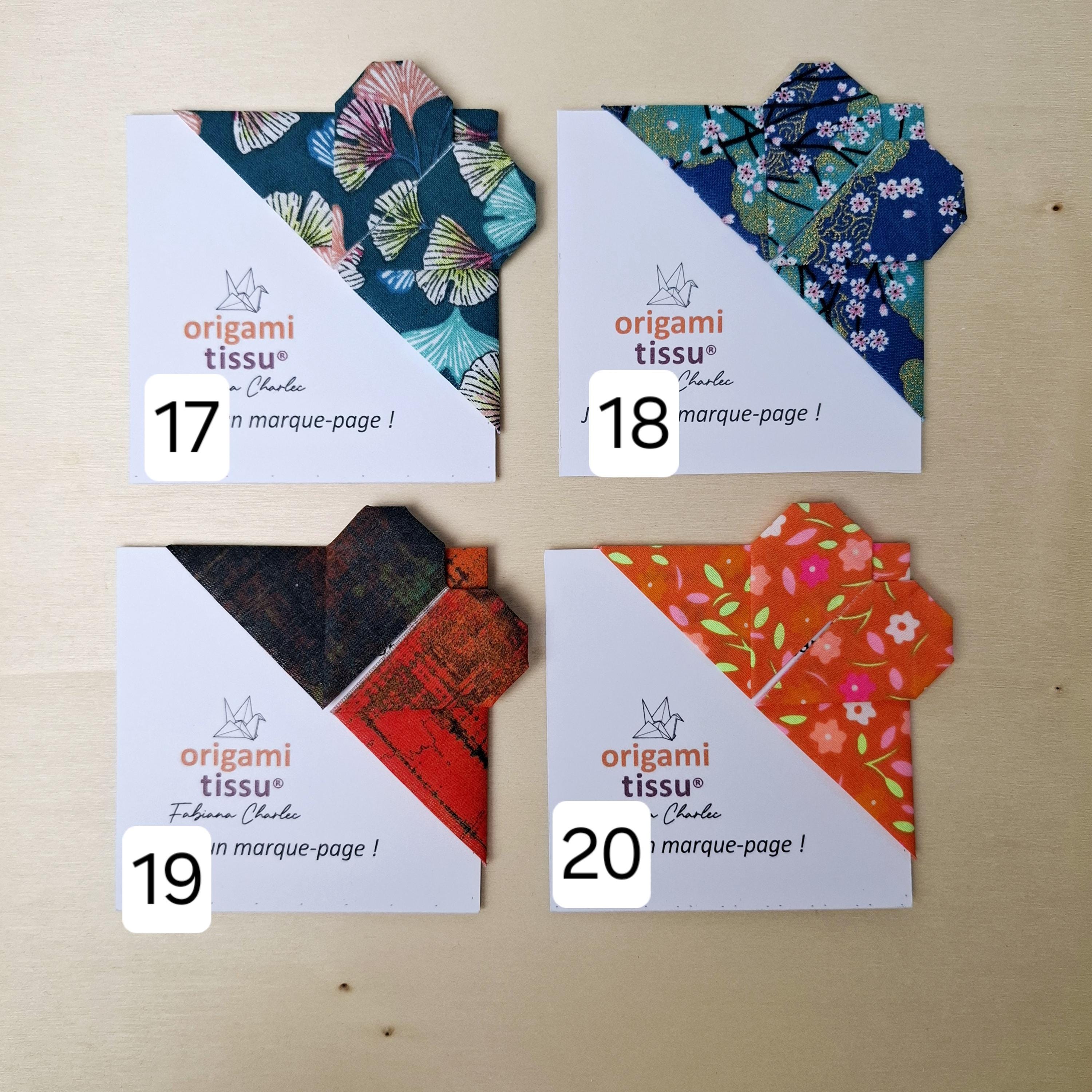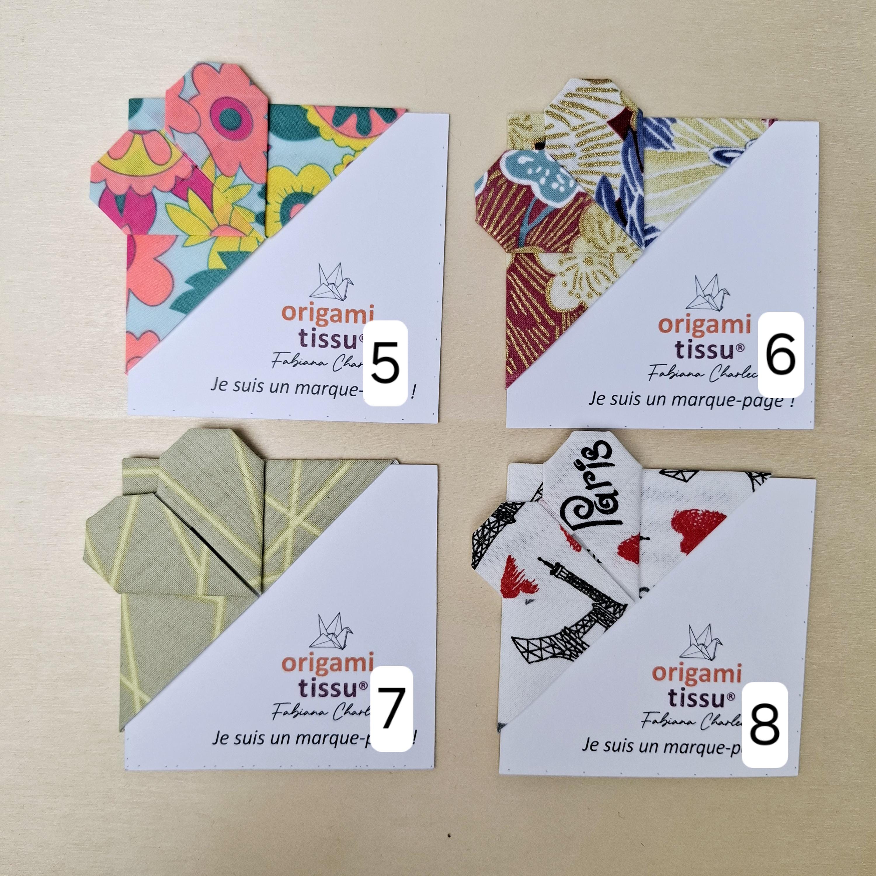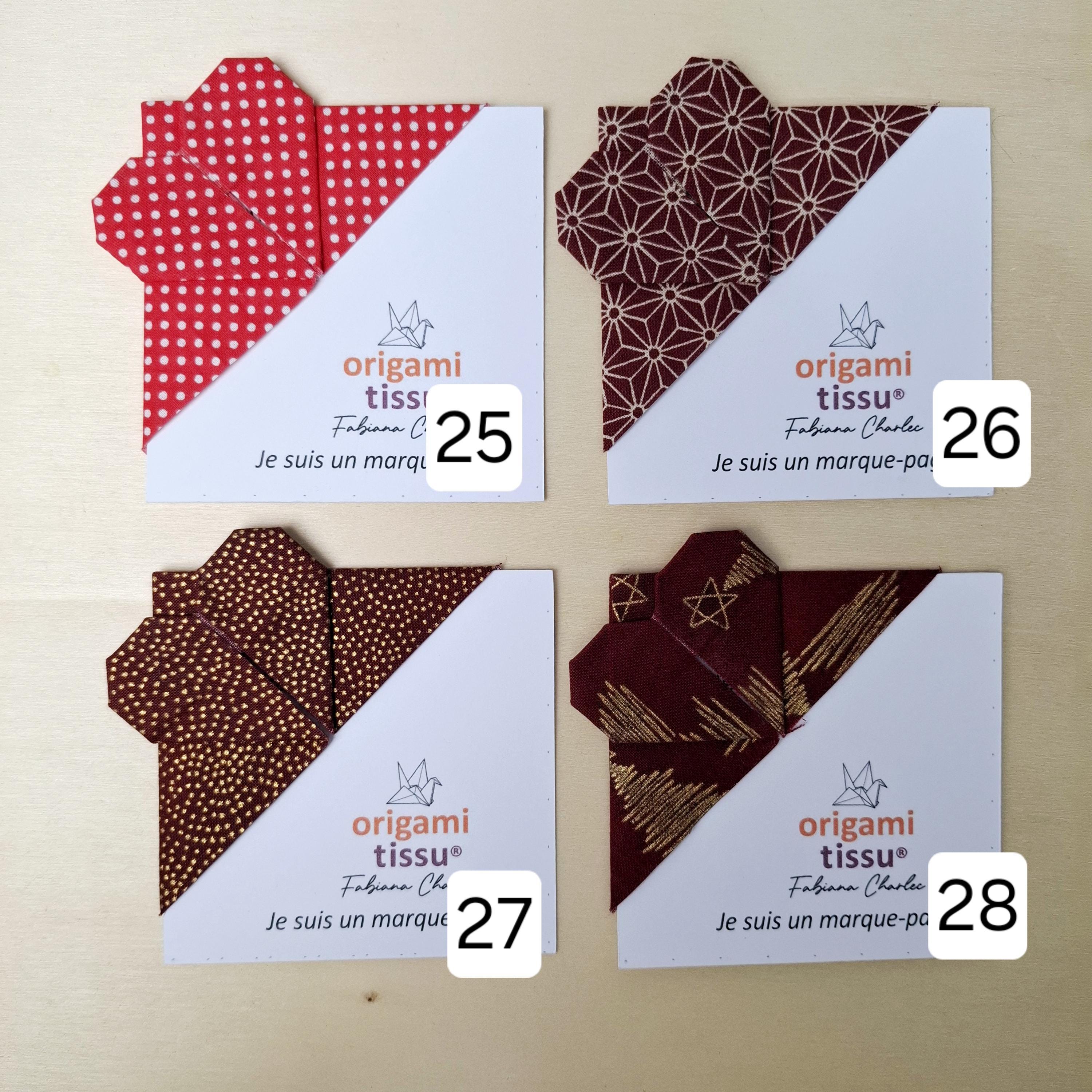 Très beaux marque page, tant par la qualité des tissus que par leurs motifs. Sans parler du savant pliage... C'est le petit cadeau idéal, je repasse commande !!!