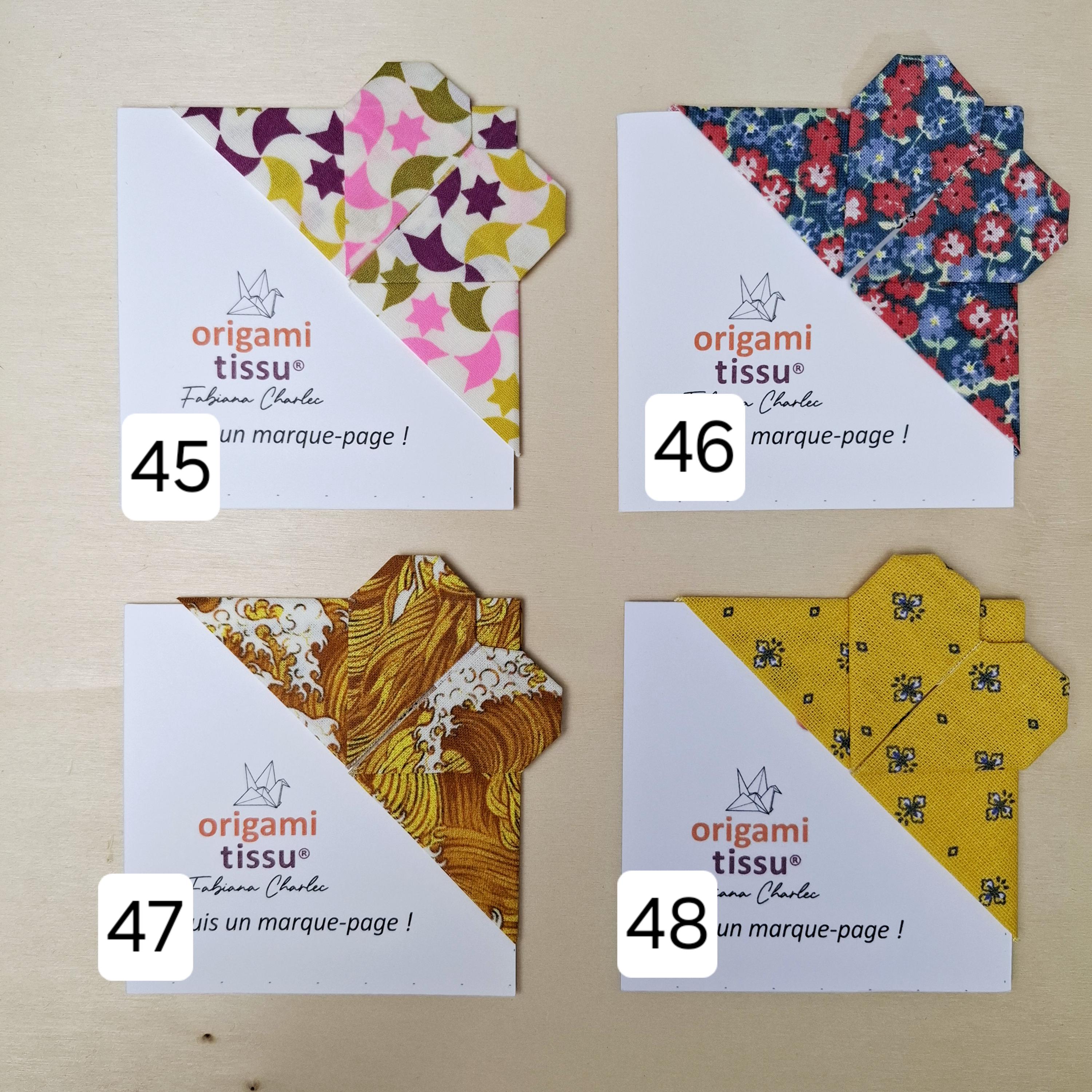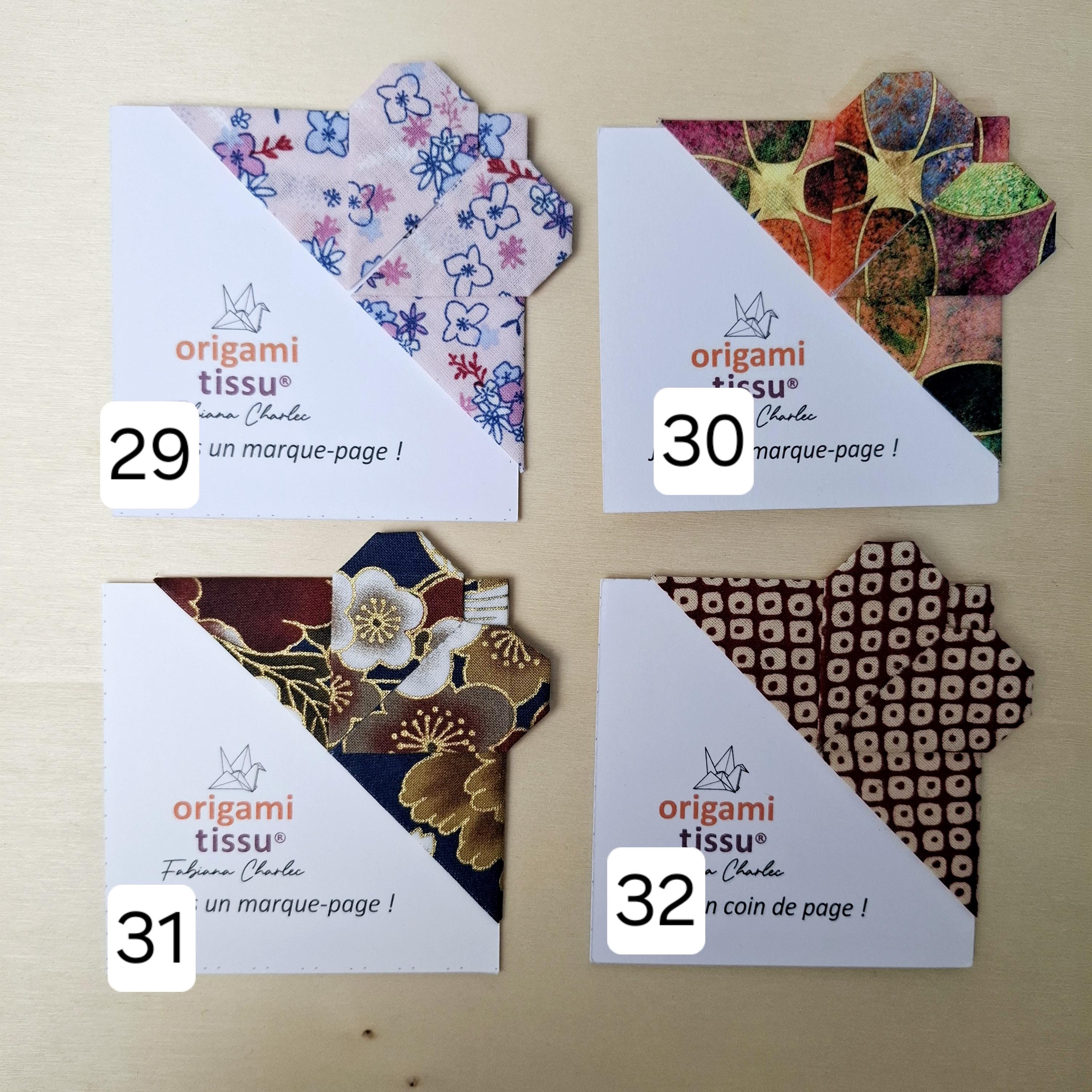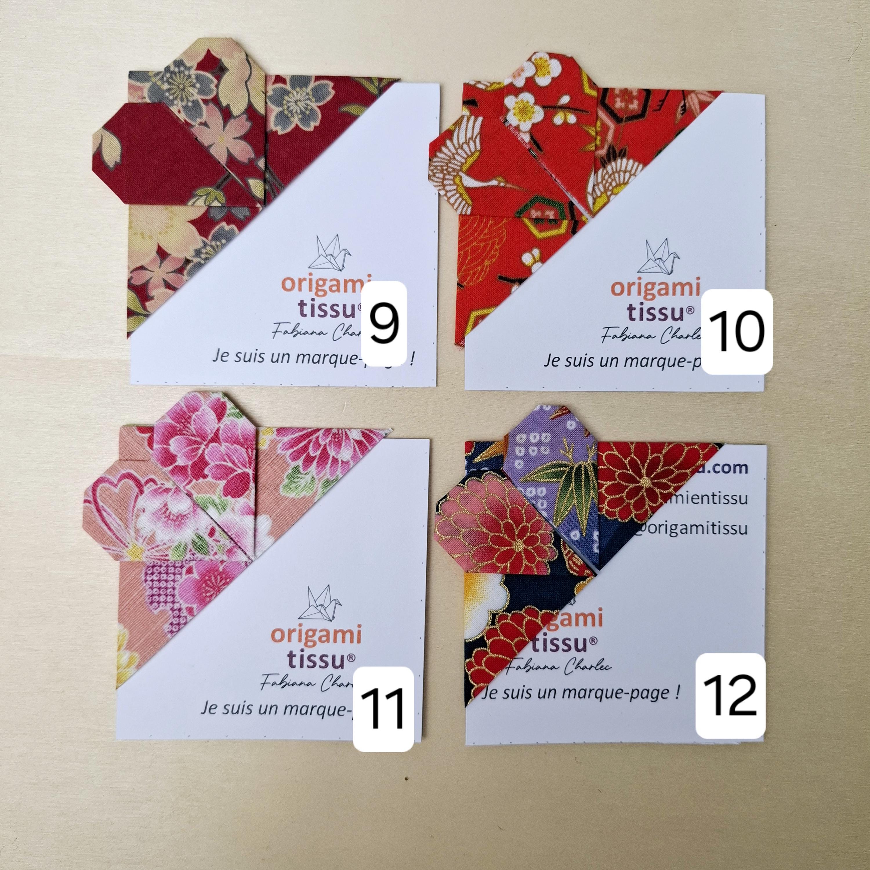 Très beaux marque page, tant par la qualité des tissus que par leurs motifs. Sans parler du savant pliage... C'est le petit cadeau idéal, je repasse commande !!!