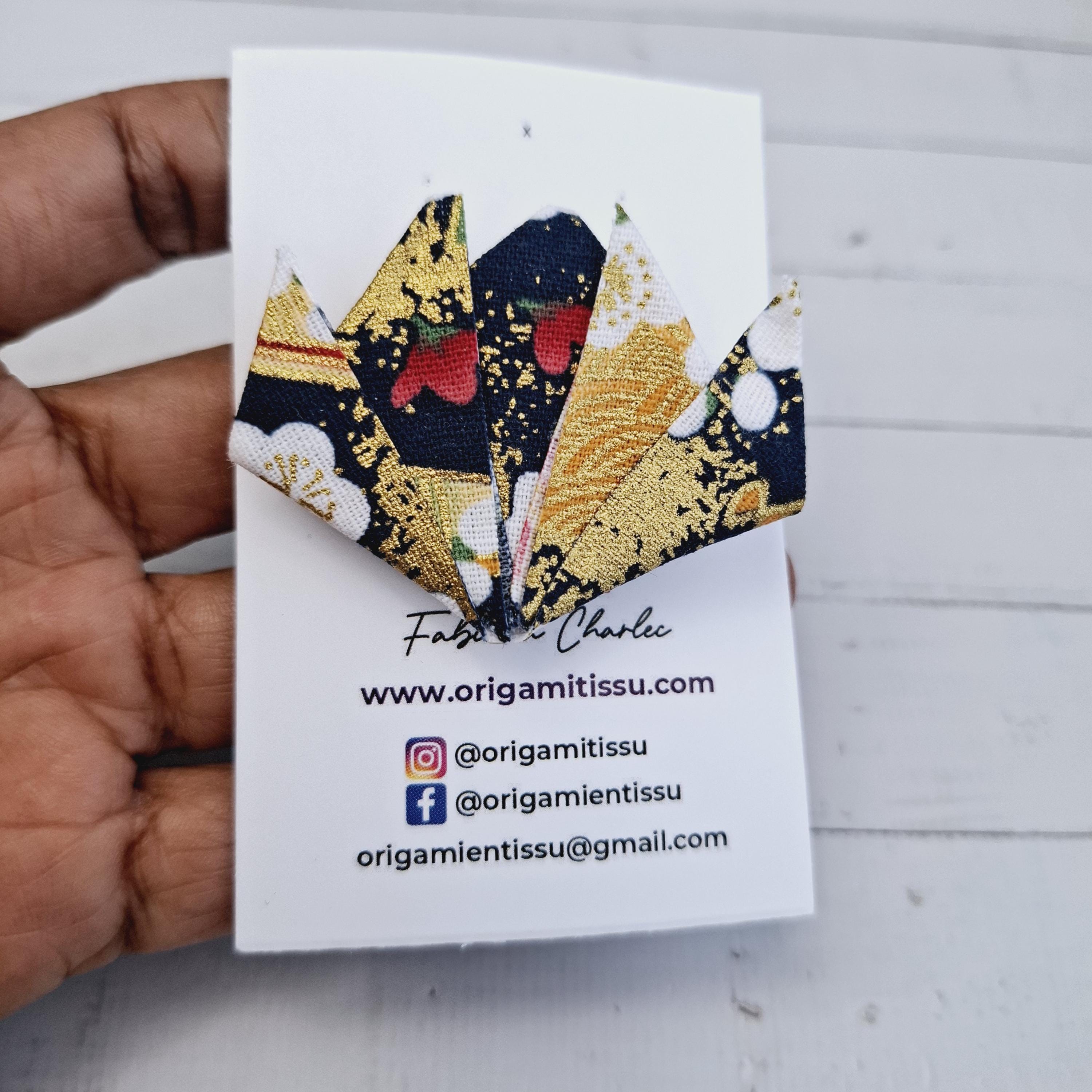 Toutes mes créations sont fait-main en France, et il y a plein d'idées de cadeaux sympas à offrir : bijoux fantaisie en tissu (boucles d'oreilles en origami, broches en tissu, ...) et d'accessoires pratiques (porte-cartes, protège-passeport, ...)