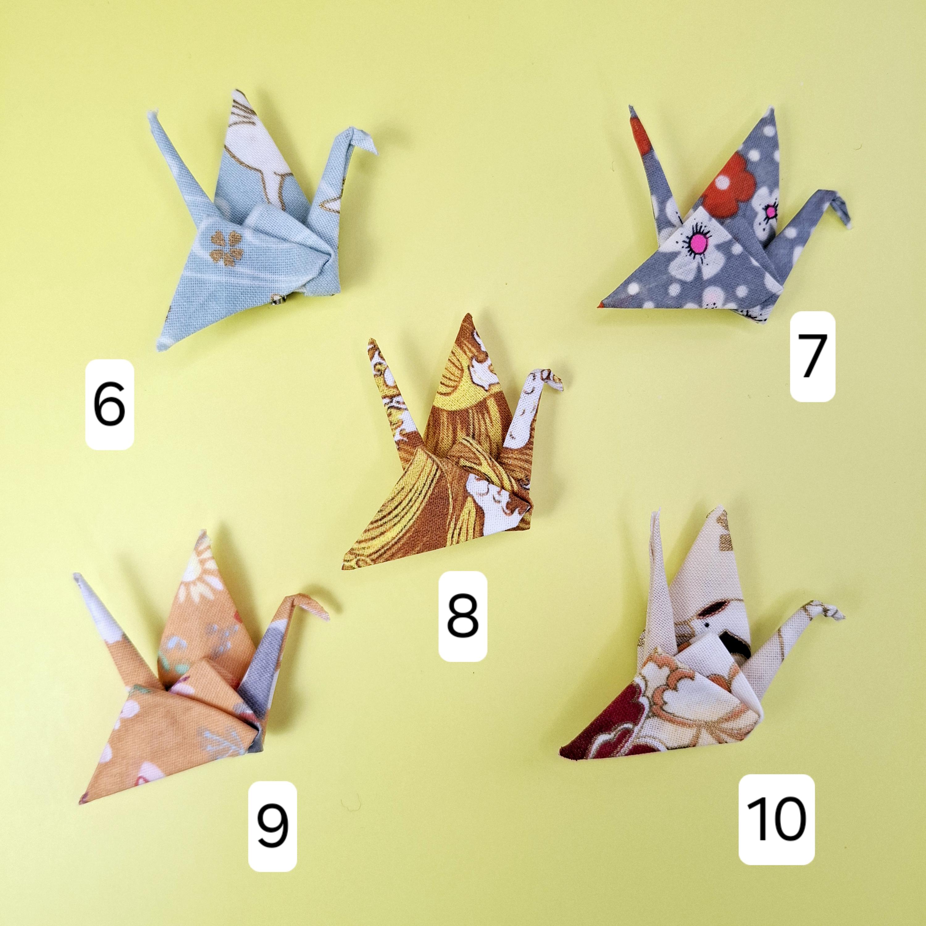 Treat yourself or a loved one to a symbol of luck and prosperity with our origami fabric crane brooches. These unique and exquisite creations are sure to attract attention and admiring compliments.