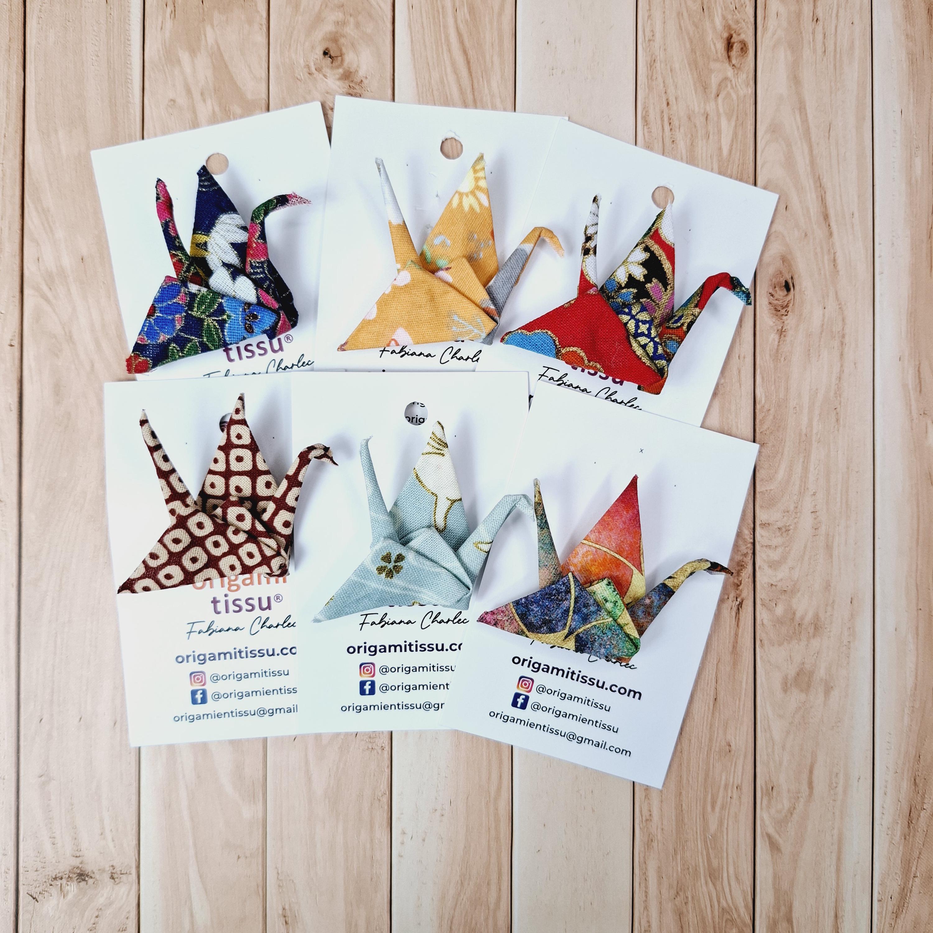 Each brooch is a unique piece, carefully hand-folded according to the ancient tradition of origami. The delicate details and vibrant colors of our fabric cranes make them perfect accessories to enhance a formal or casual outfit.