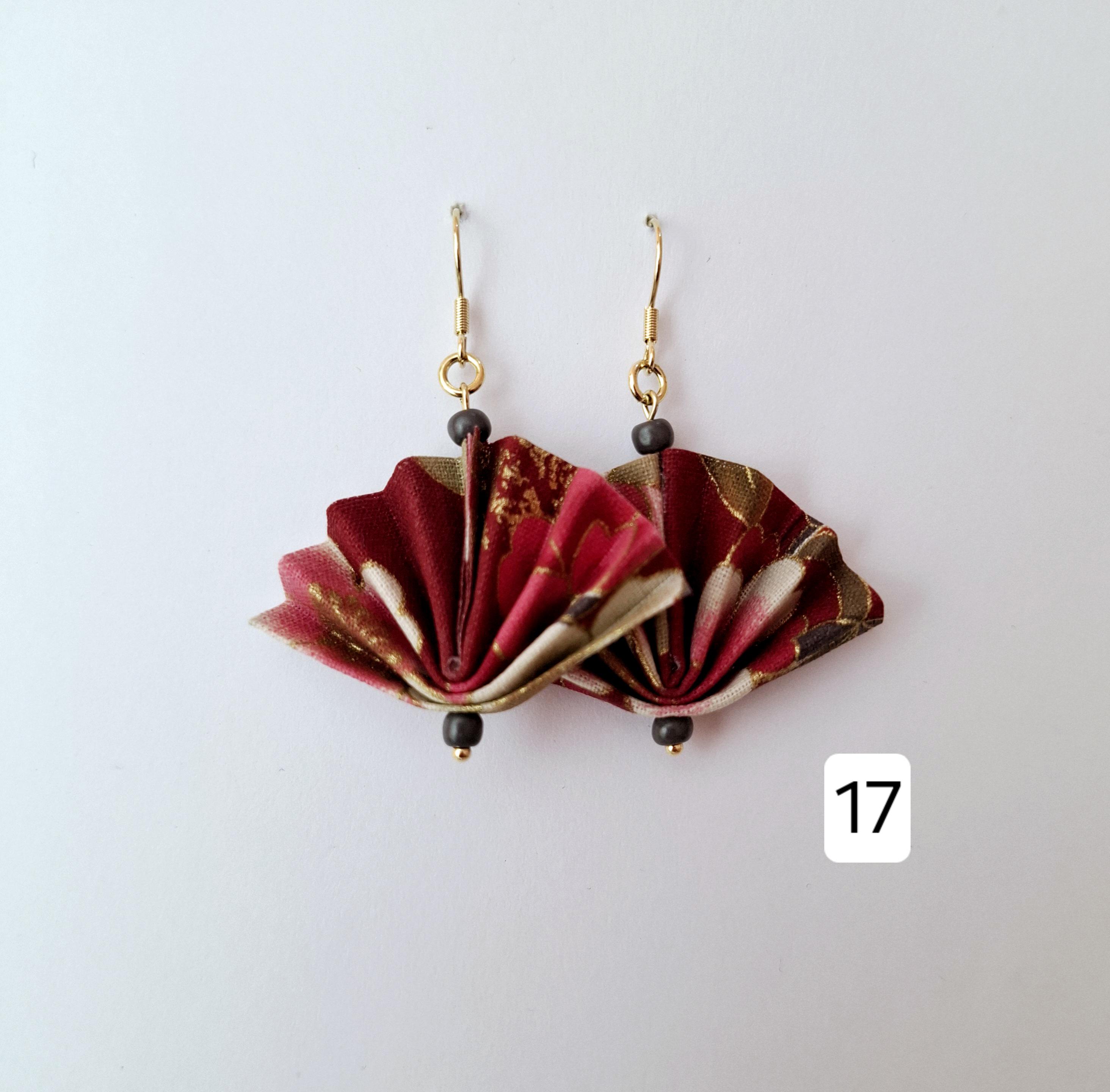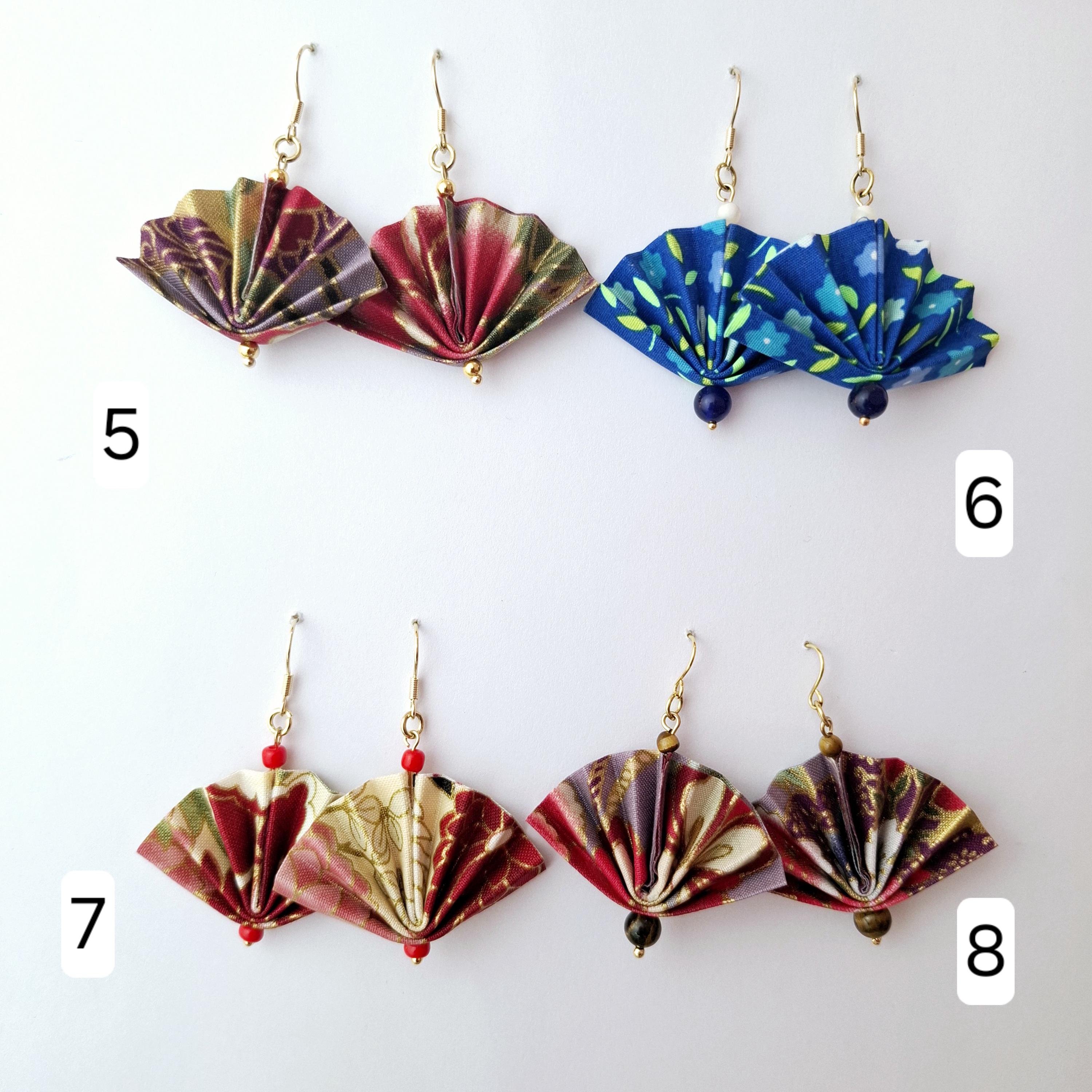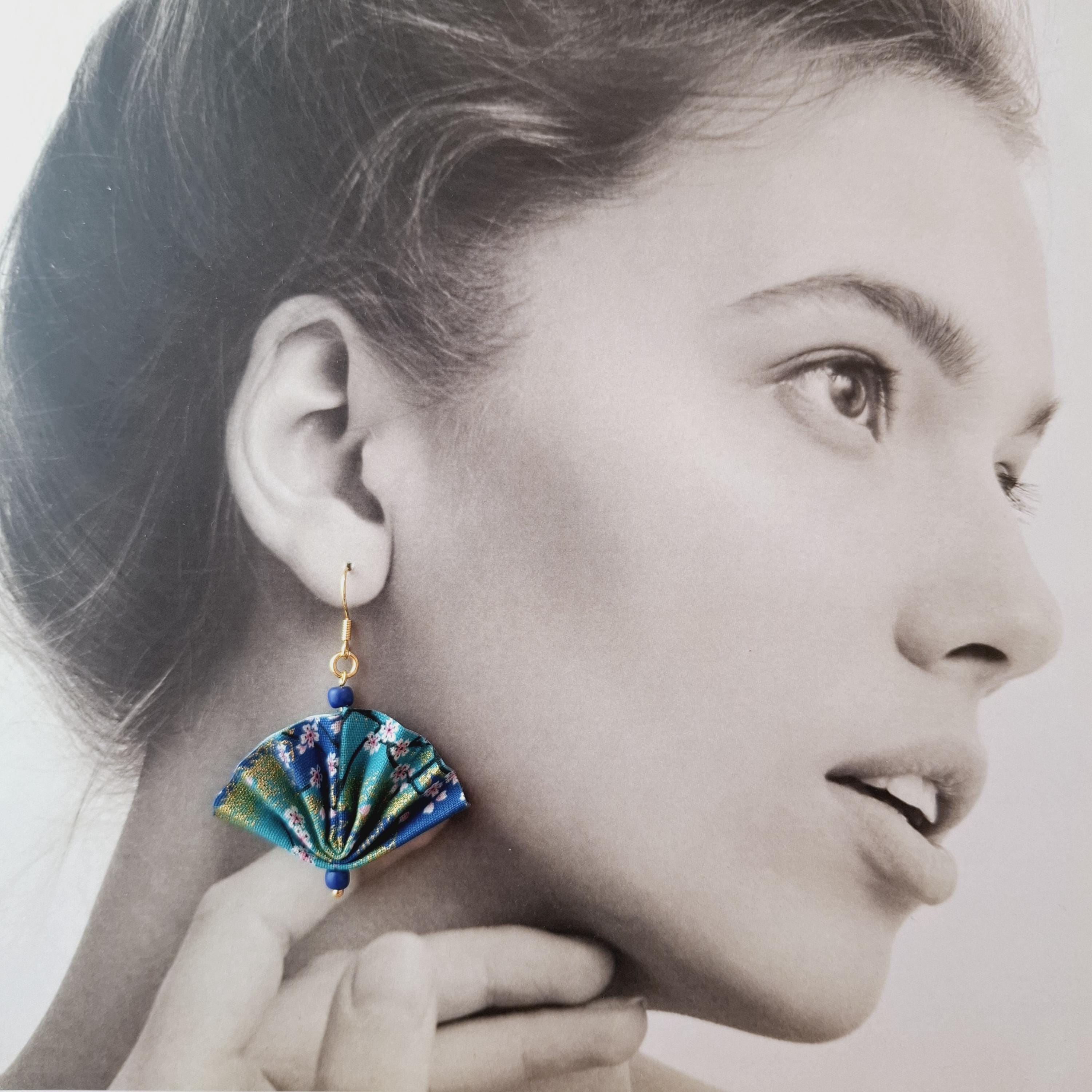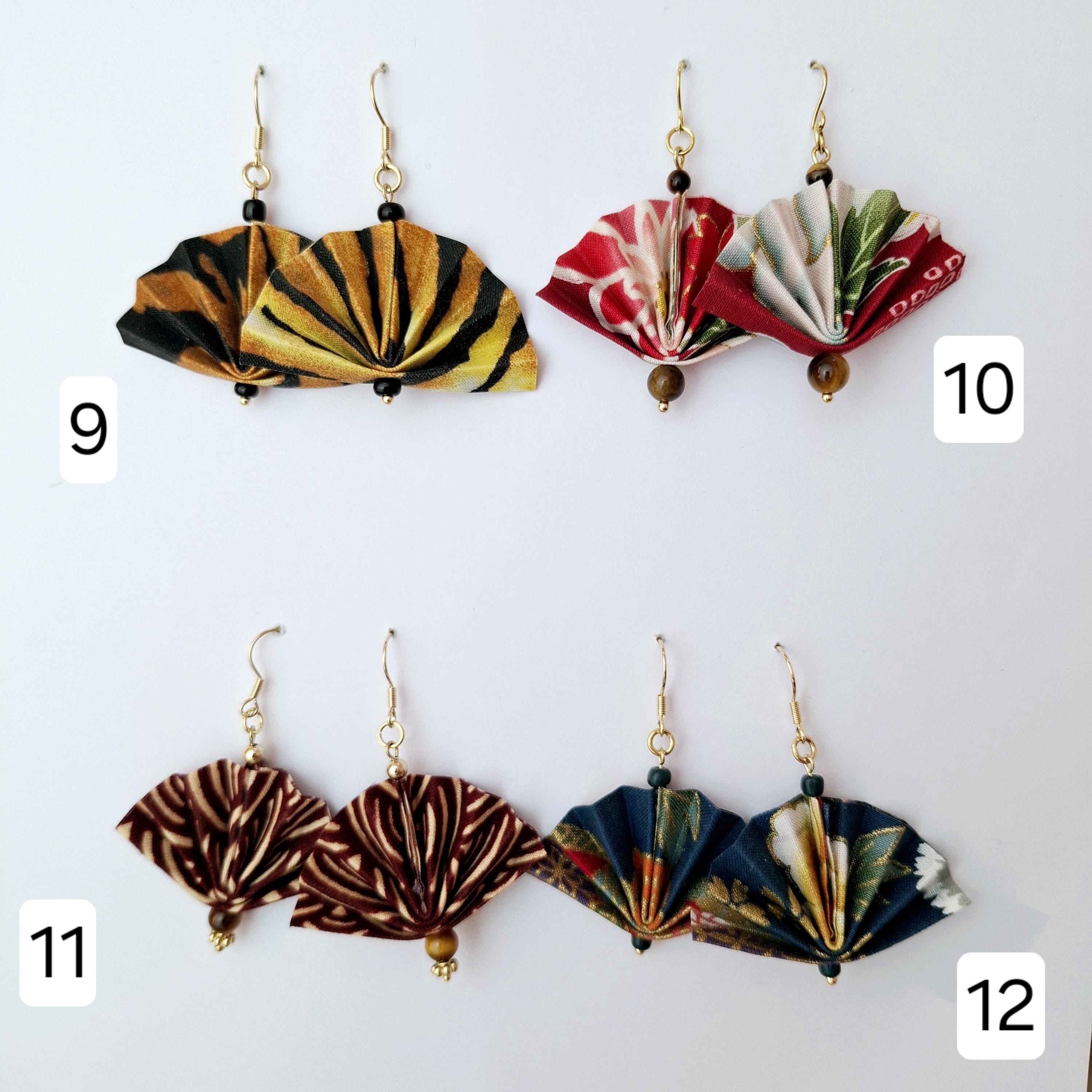 Earrings with a pretty origami fan, fabric earrings, origami jewelry