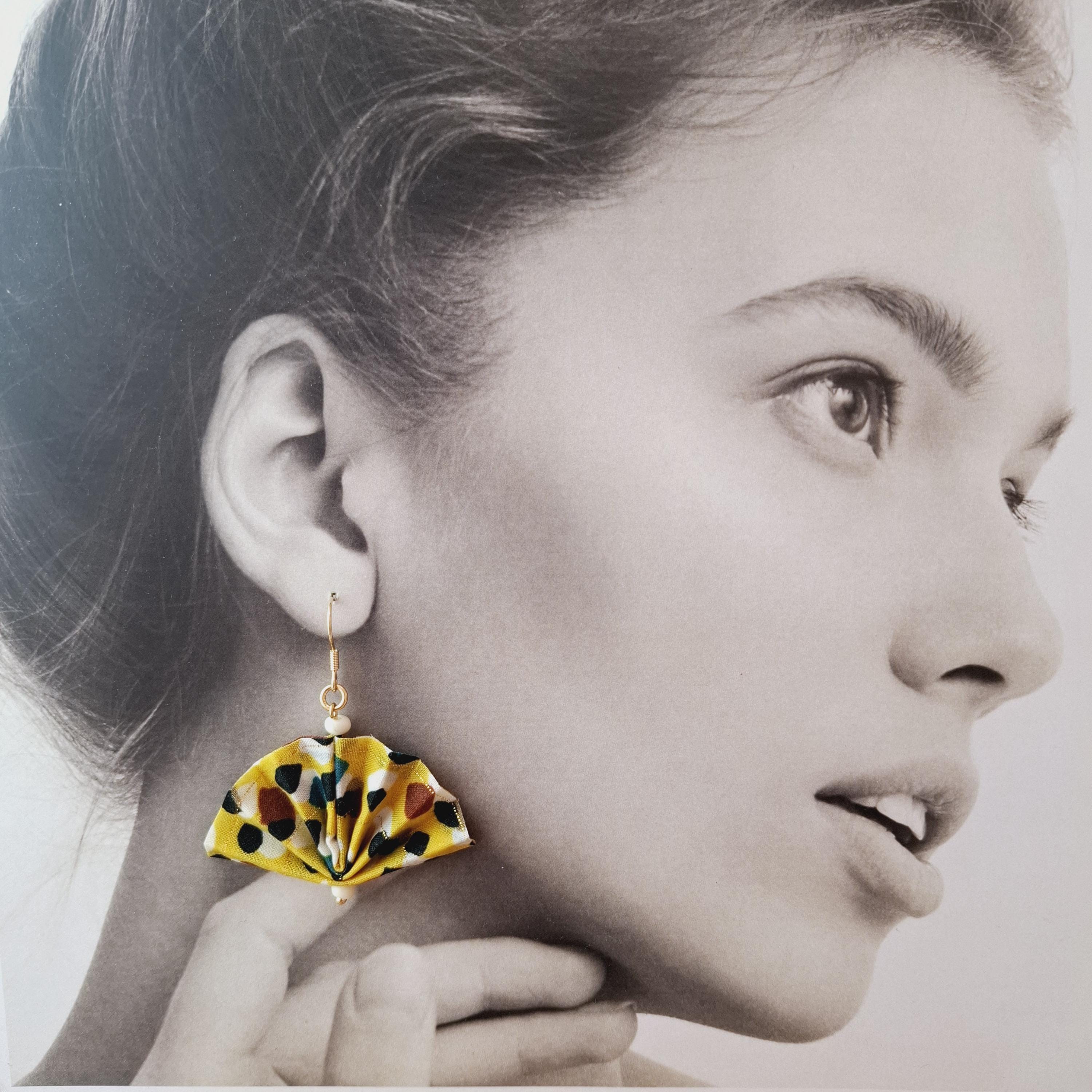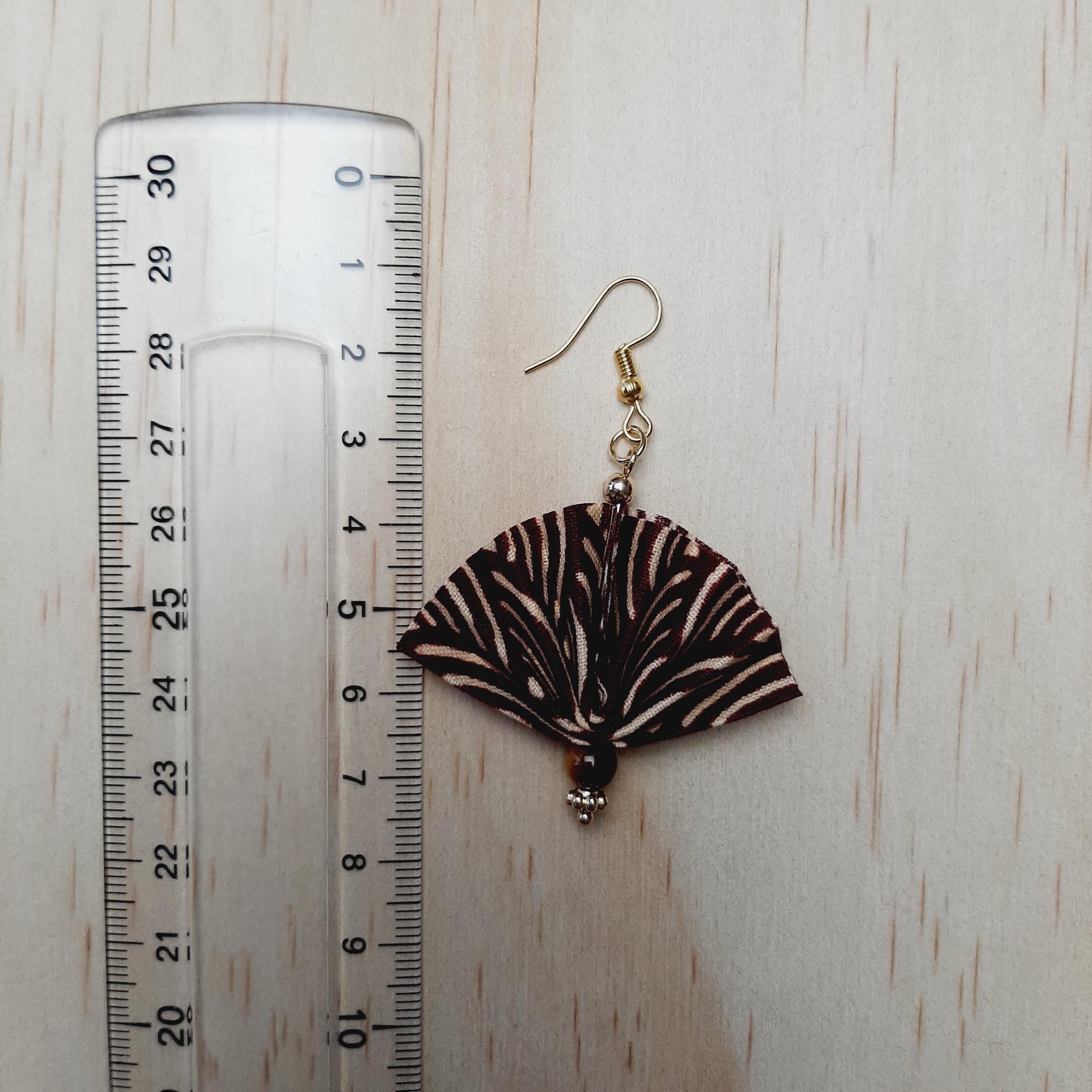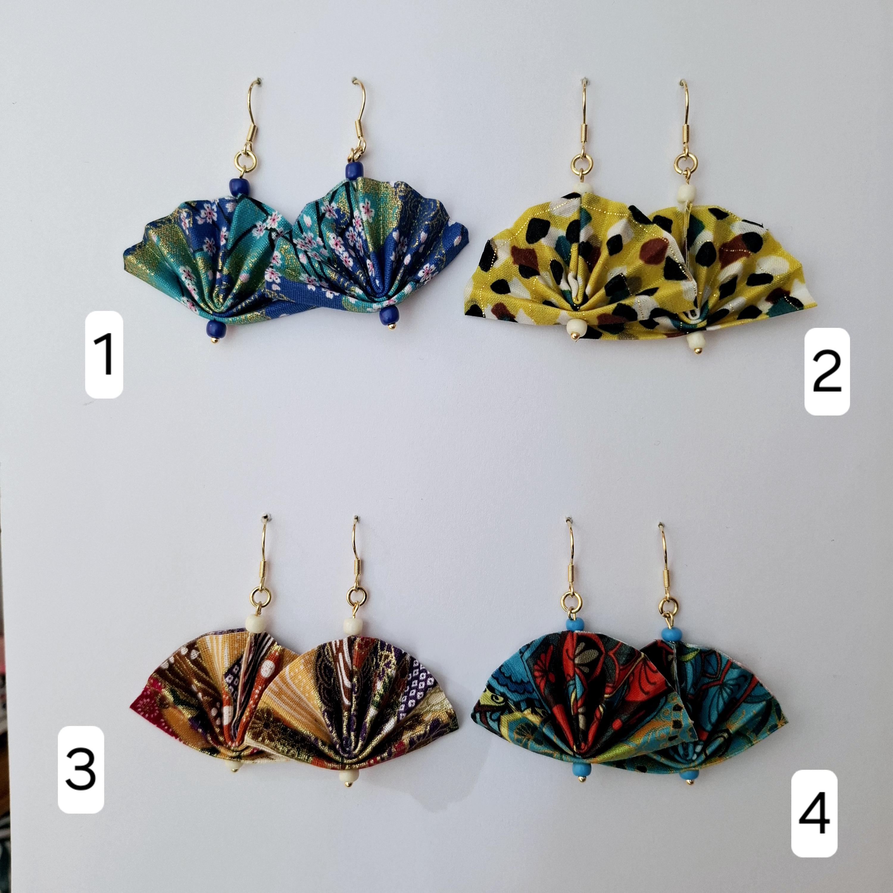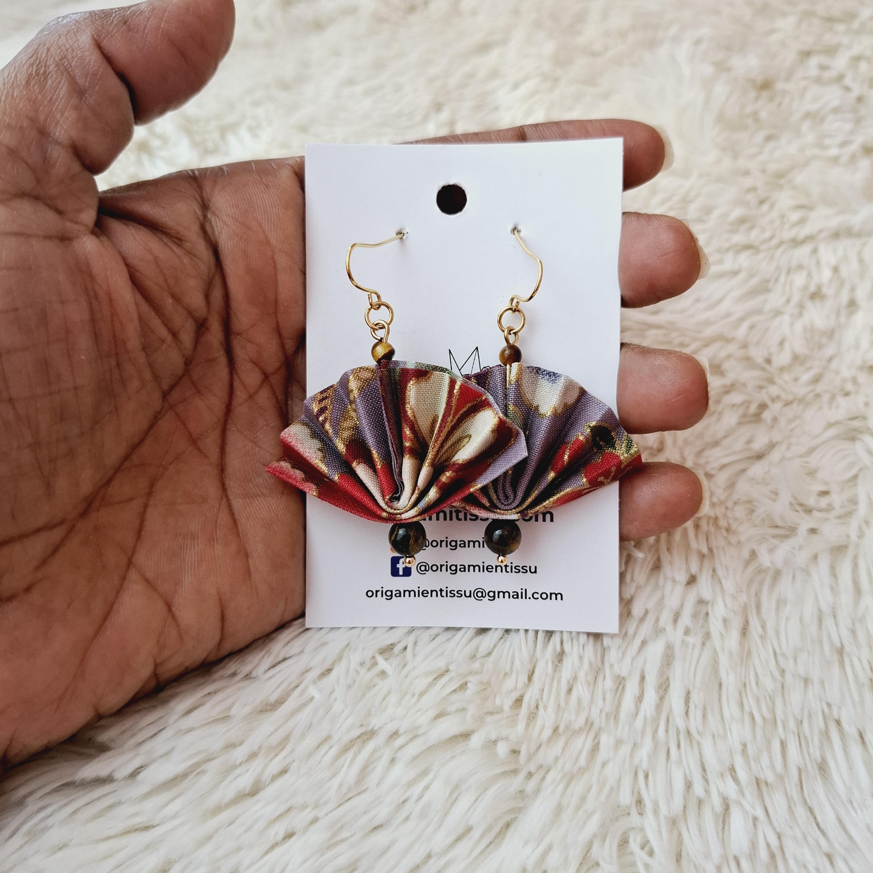 Earrings with a pretty origami fan, fabric earrings, origami jewelry