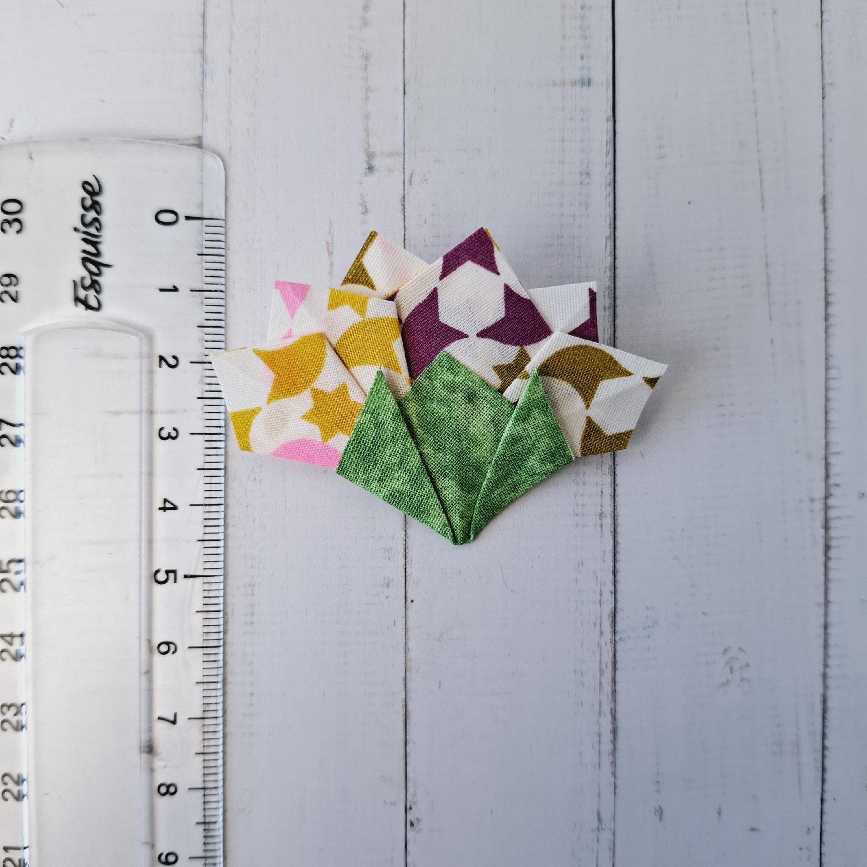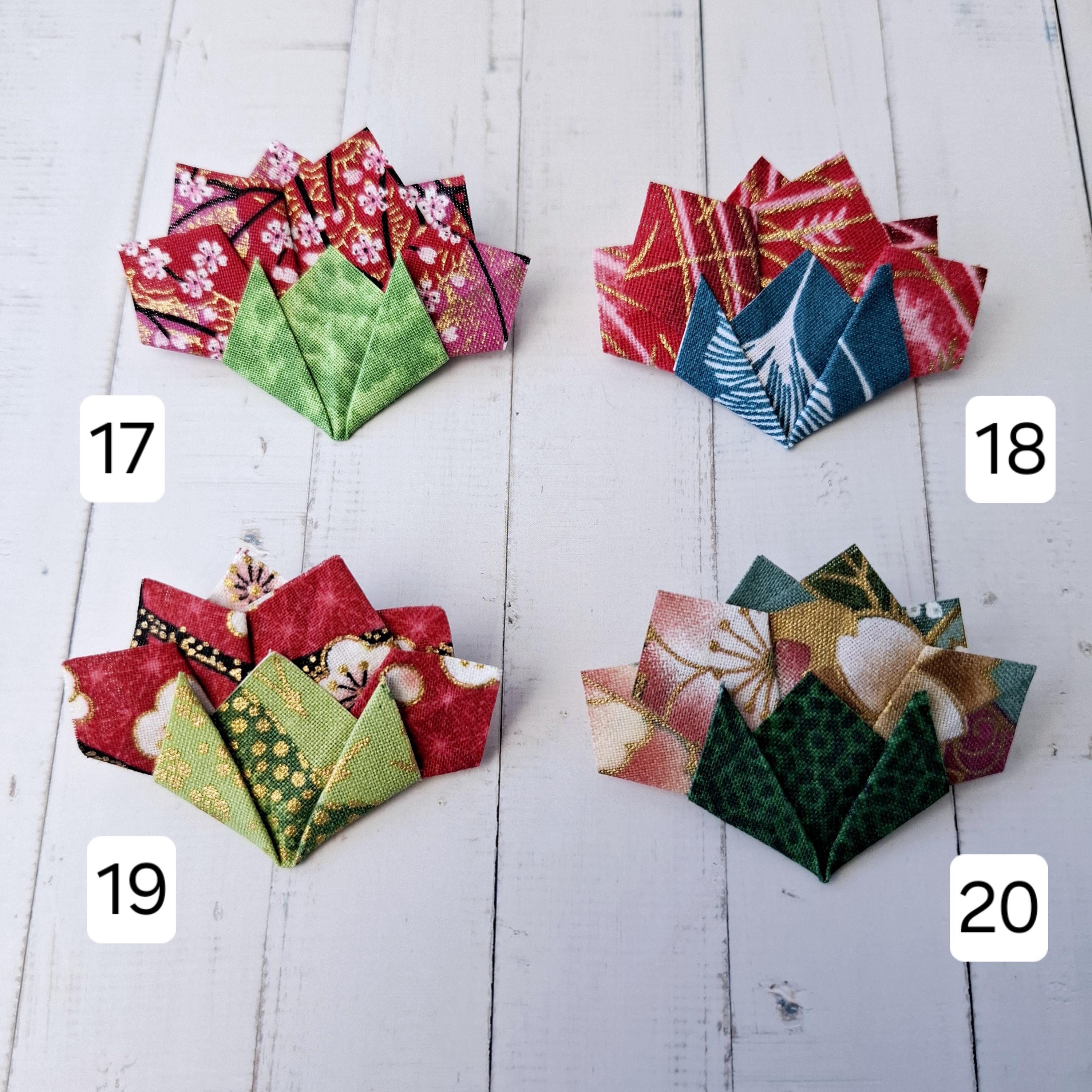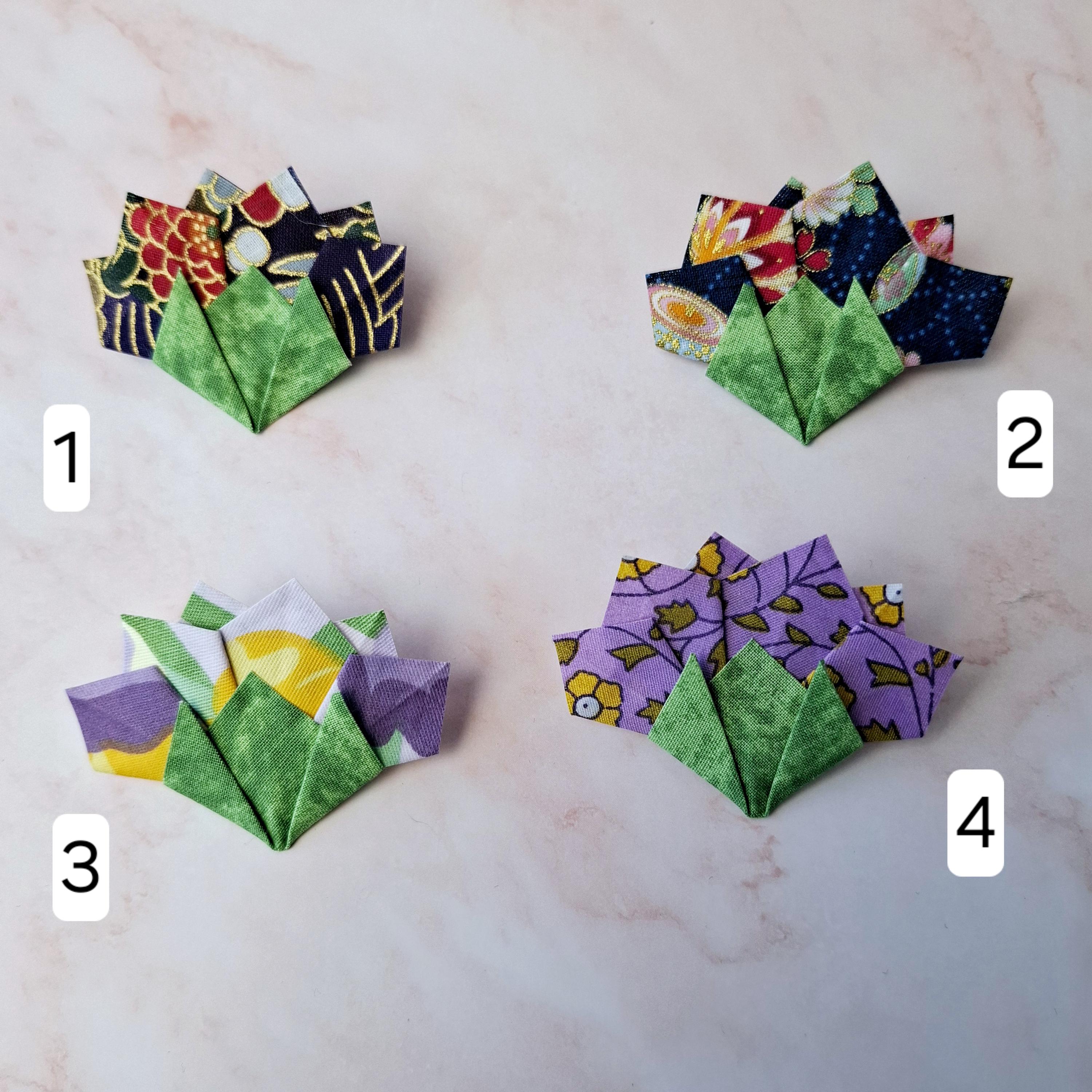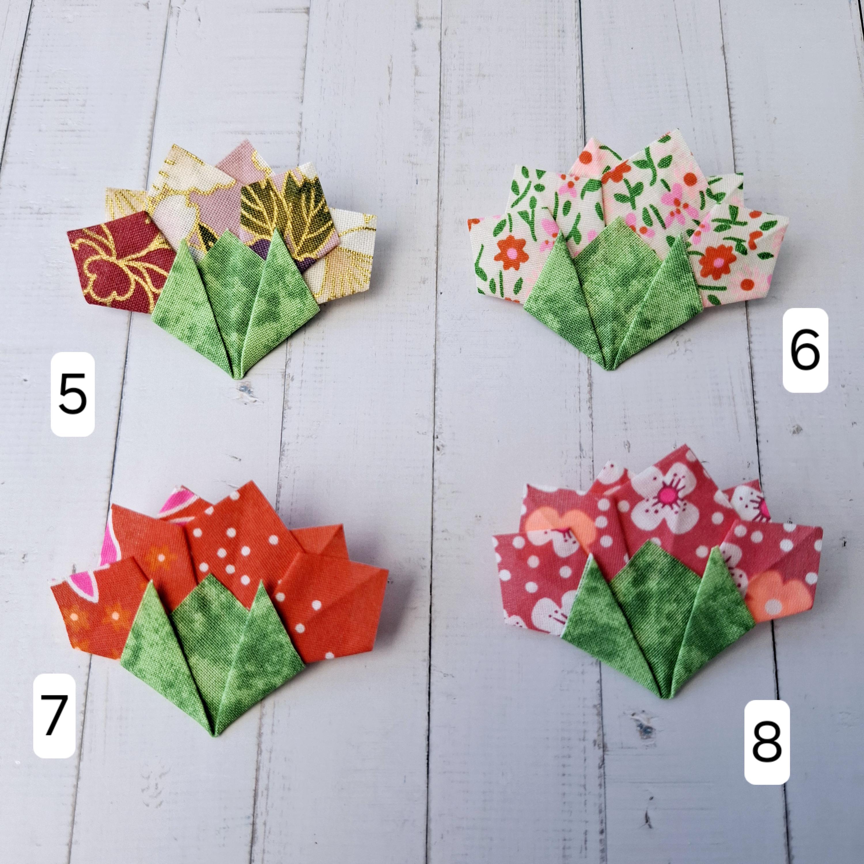 Add a touch of luck and elegance to your style with this fabric origami carnation brooch.