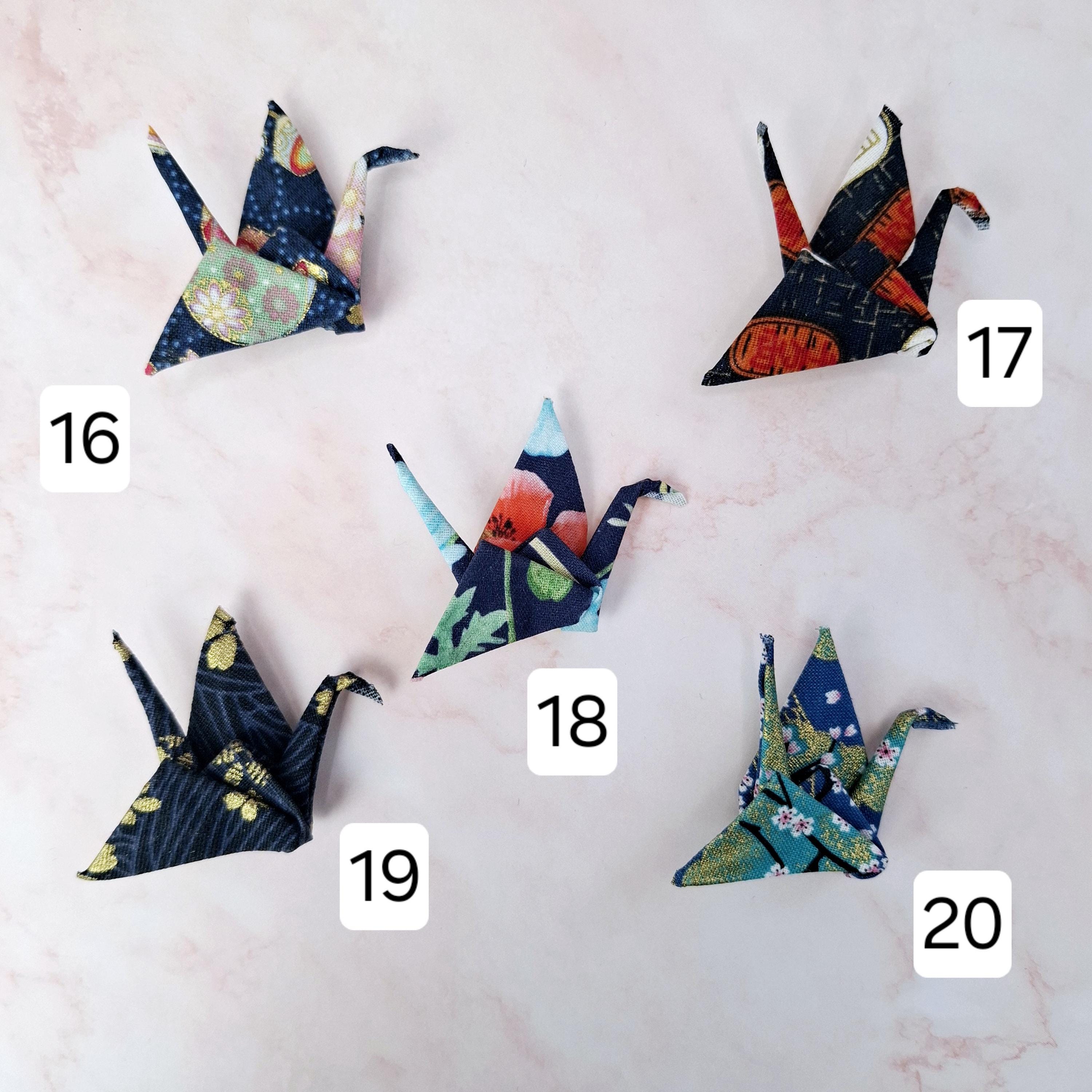 Treat yourself or a loved one to a symbol of luck and prosperity with our origami fabric crane brooches. These unique and exquisite creations are sure to attract attention and admiring compliments.
