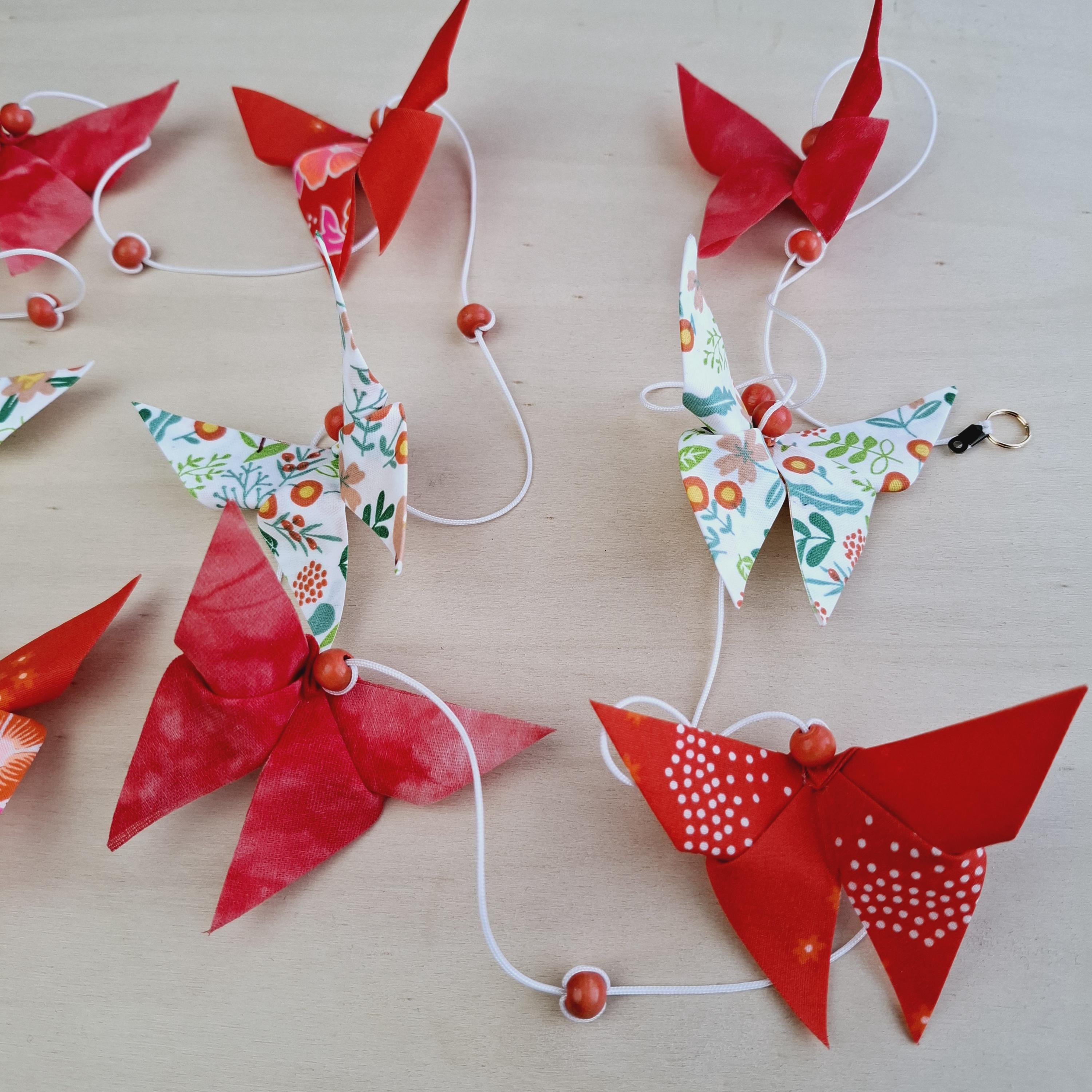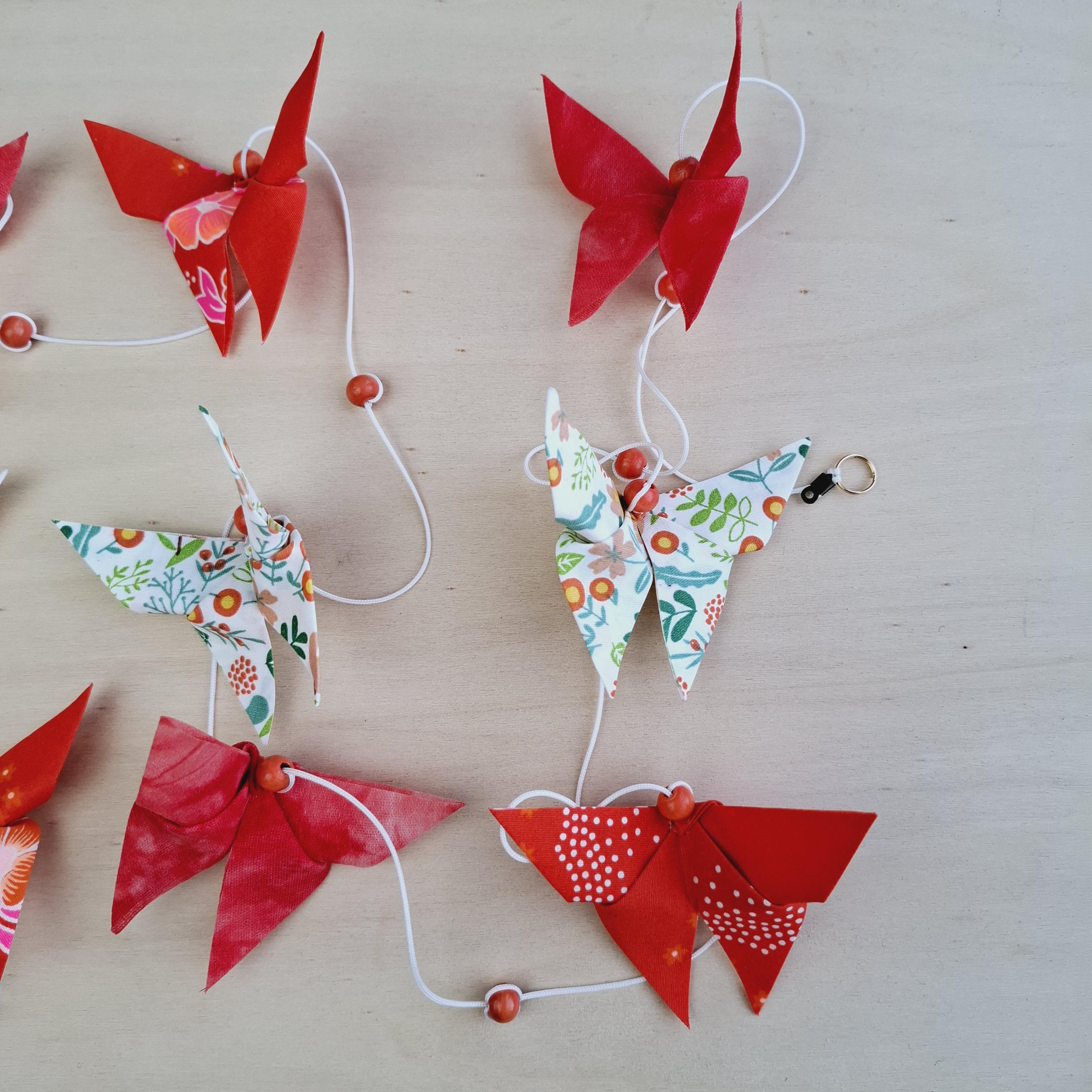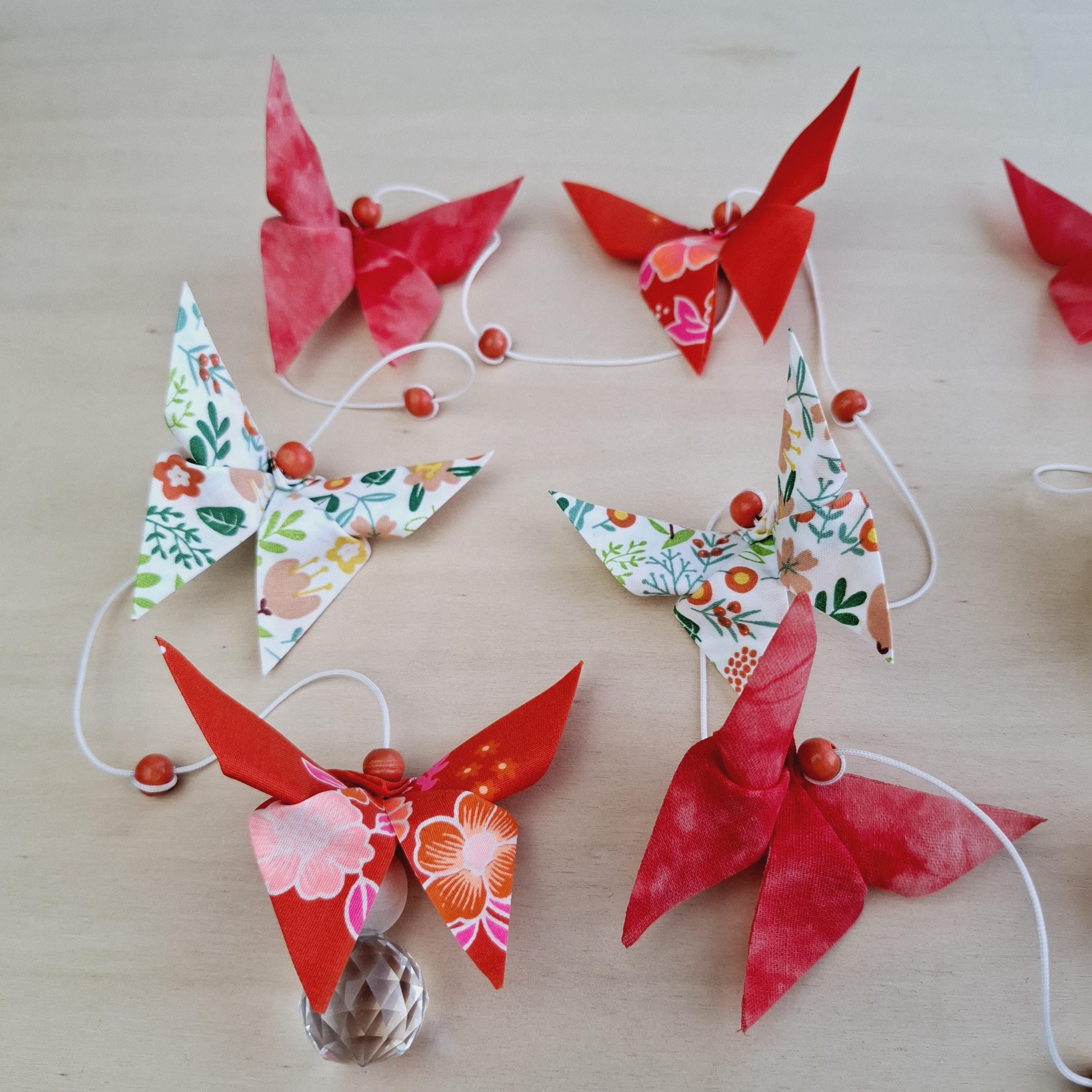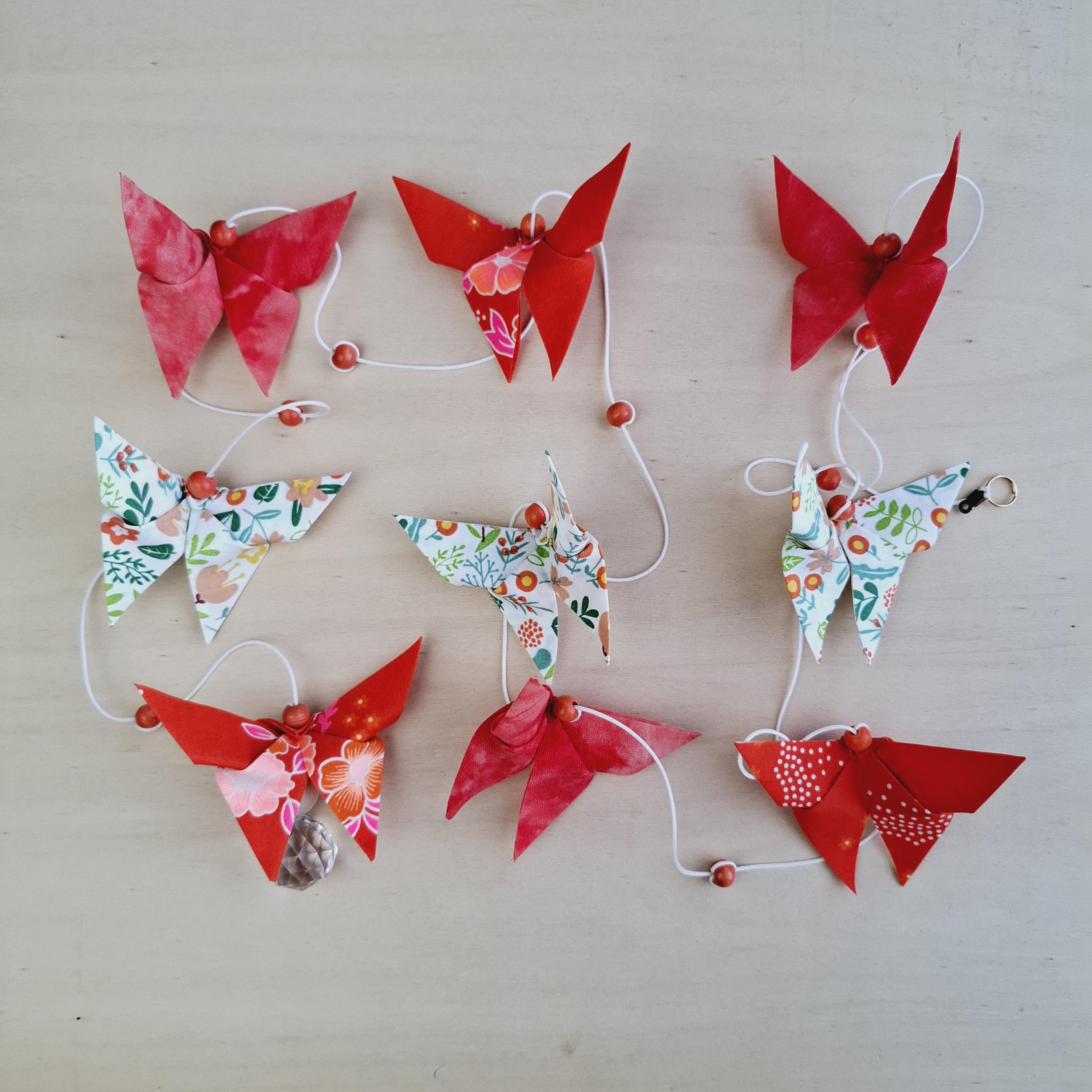 Let yourself be captivated by this handcrafted origami pendant light, a unique creation designed to transform the atmosphere of your home. Composed of nine fabric butterflies in shimmering colors, each piece is folded with meticulous precision, symbolizing lightness and renewal.